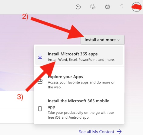1. Open up a web browser and sign into https://www.office.com using your malone.edu username (email address) and password. 2. On the right hand side of the page that loads, look for the "Install and more" button. Click it and select "Install Microsoft 365 apps." An installation application will download to your computer. 3. Use the installer that you just downloaded to install the applications. You will need to be signed in with your malone.edu username (email address) and password to utilize the applications. Your access license will continue to work as long as you are enrolled in a current or future term at Malone. If you have any problems with the installation, please contact the Help Desk and we will assist you.